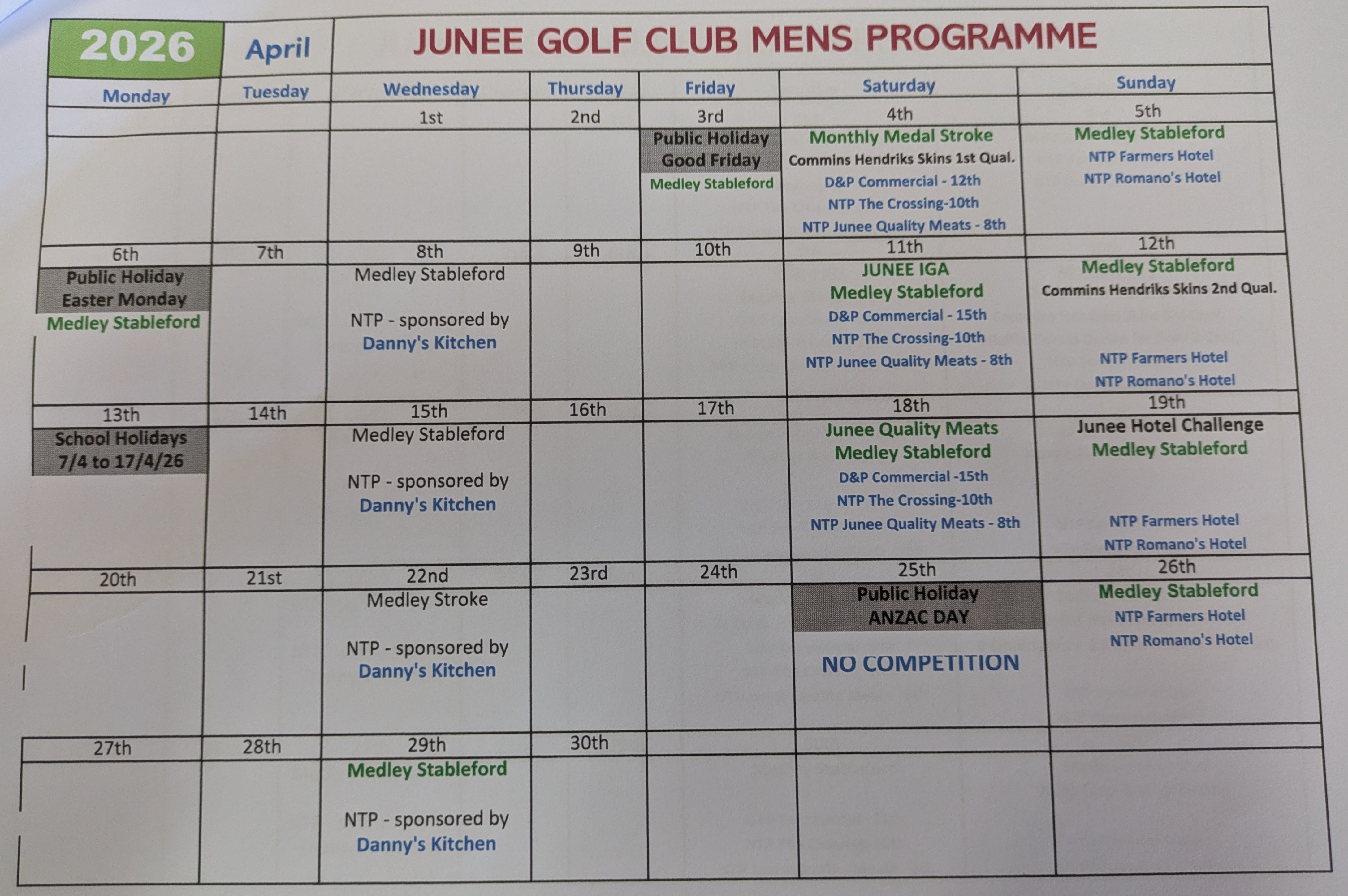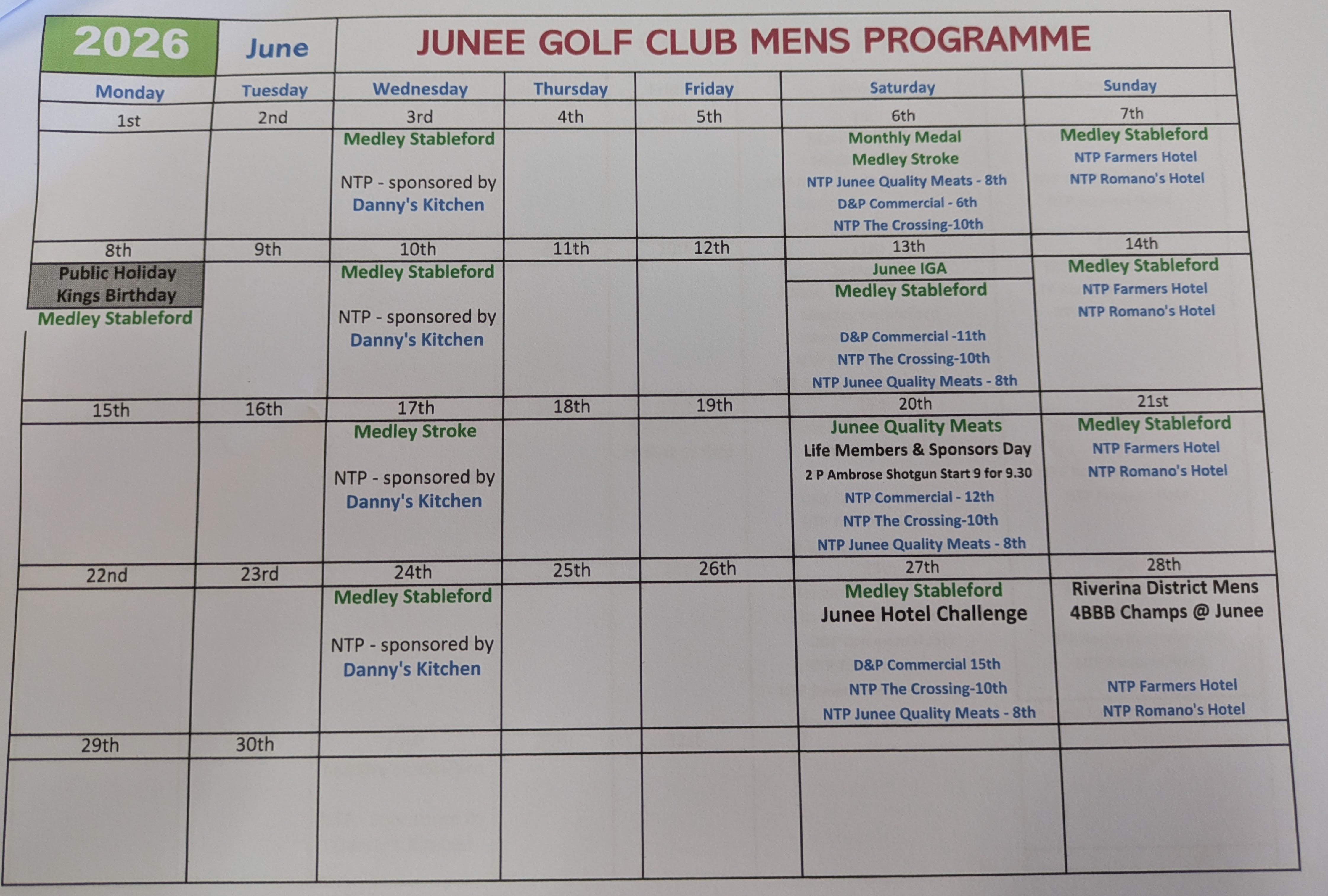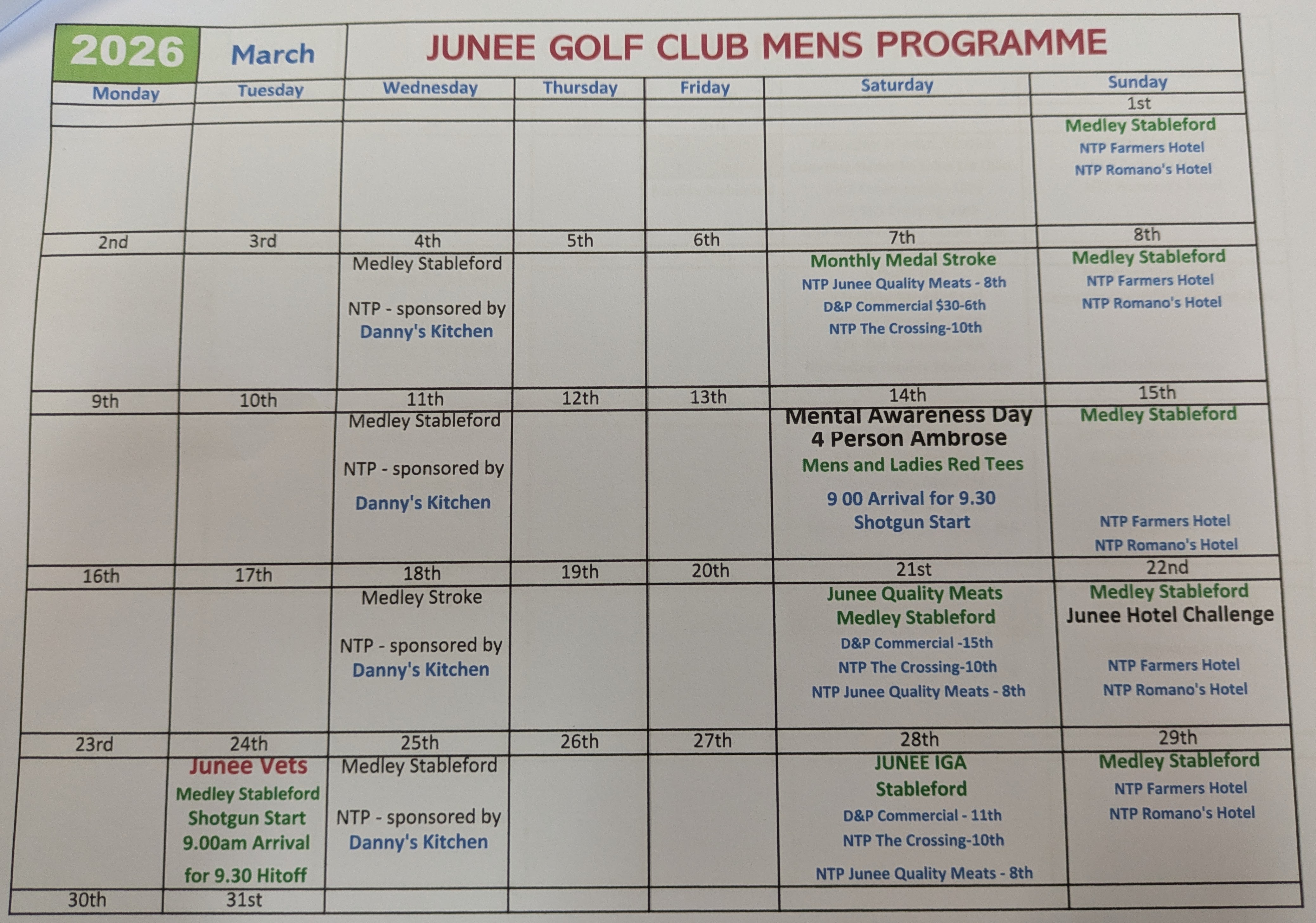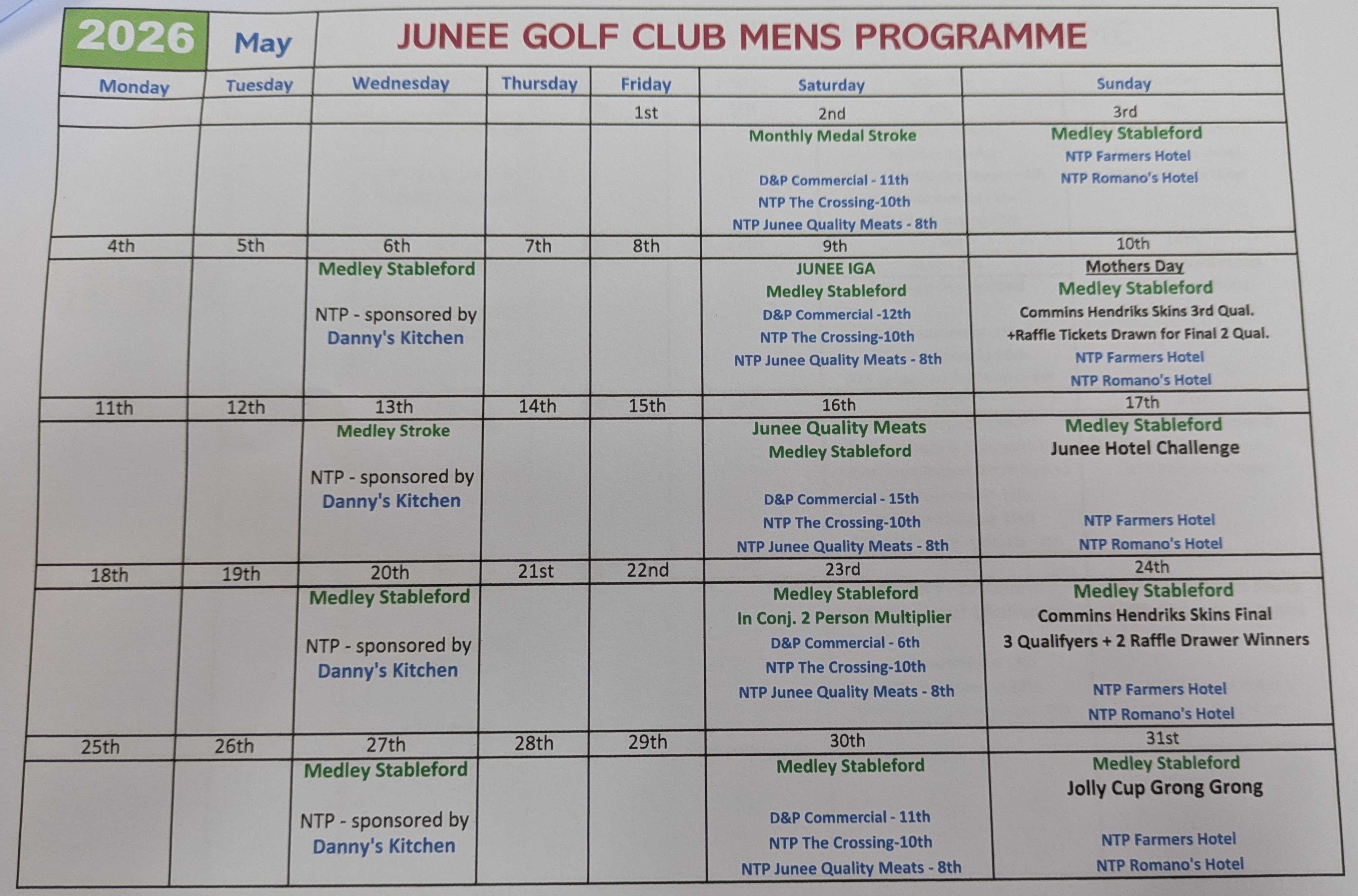 2025 Golf Programme Click the arrow on the right of the image below to move through to next month. Share this: Share on X (Opens in new window) X Share on Facebook (Opens in new window) Facebook Like Loading...